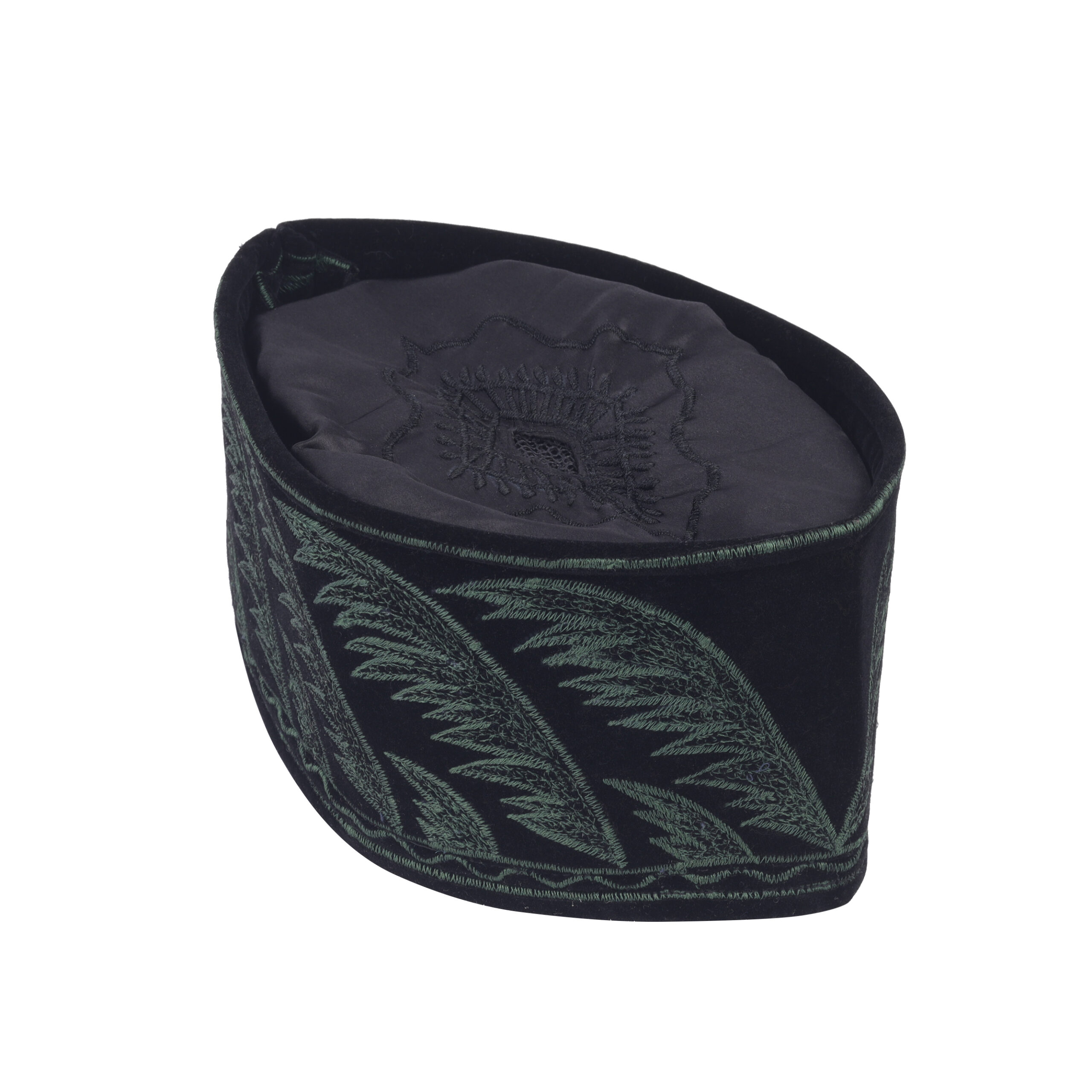 Home Luxury Turkish Caps DD – 106 – BLACK TOP GREEN KHAJUR RESHAM EMB , Turkish Design , Islamic Cap , Muslim Cap Topi , Prayer Cap , Unique Muslim Fashion , Indonesia Cap.