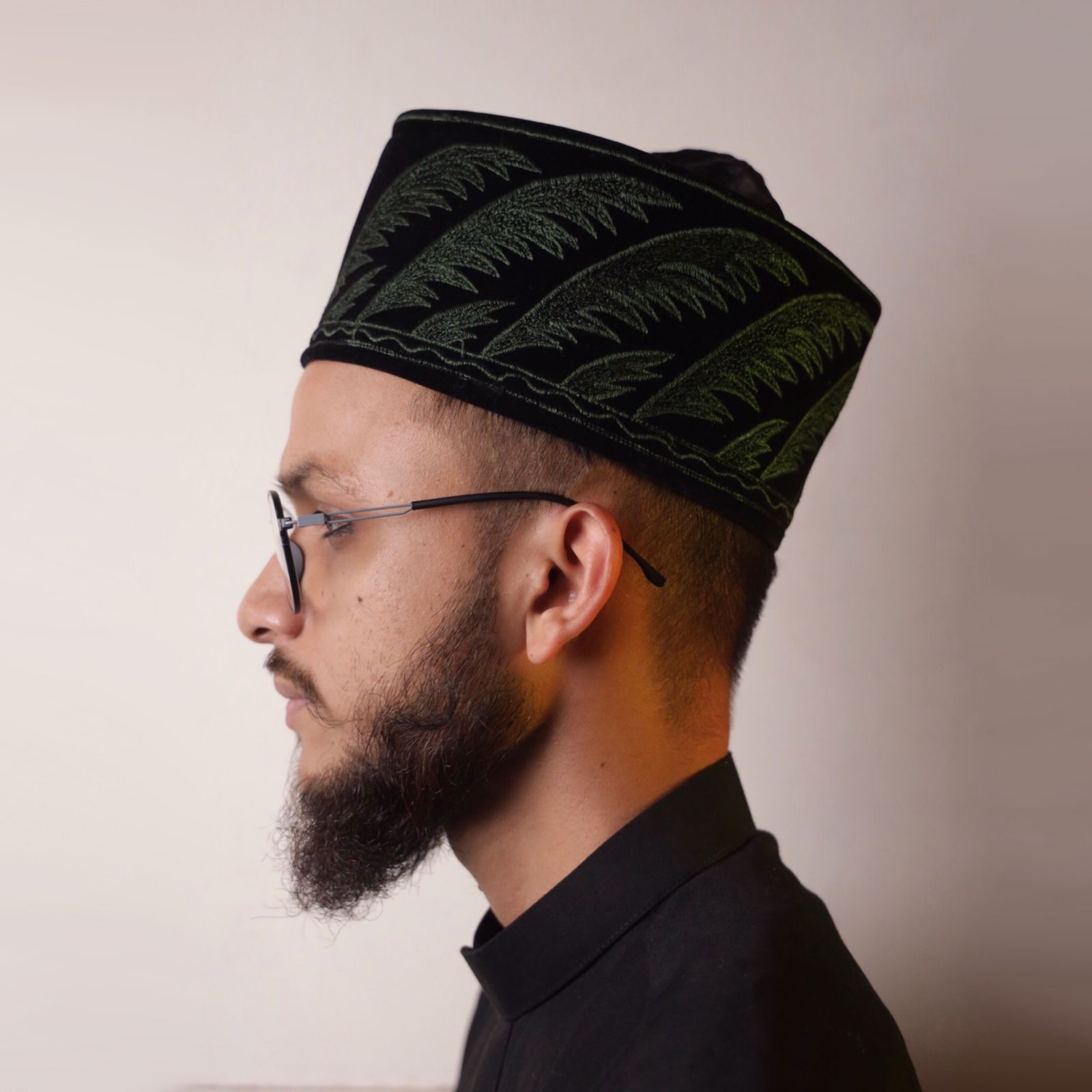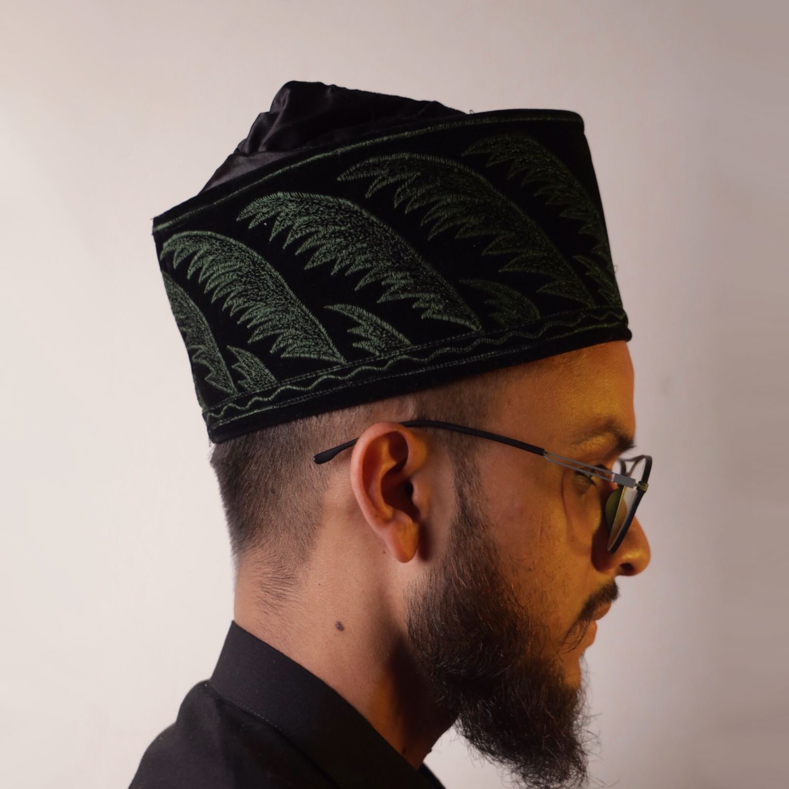 DD – 106 – BLACK TOP GREEN KHAJUR RESHAM EMB , Turkish Design , Islamic Cap , Muslim Cap Topi , Prayer Cap , Unique Muslim Fashion , Indonesia Cap.