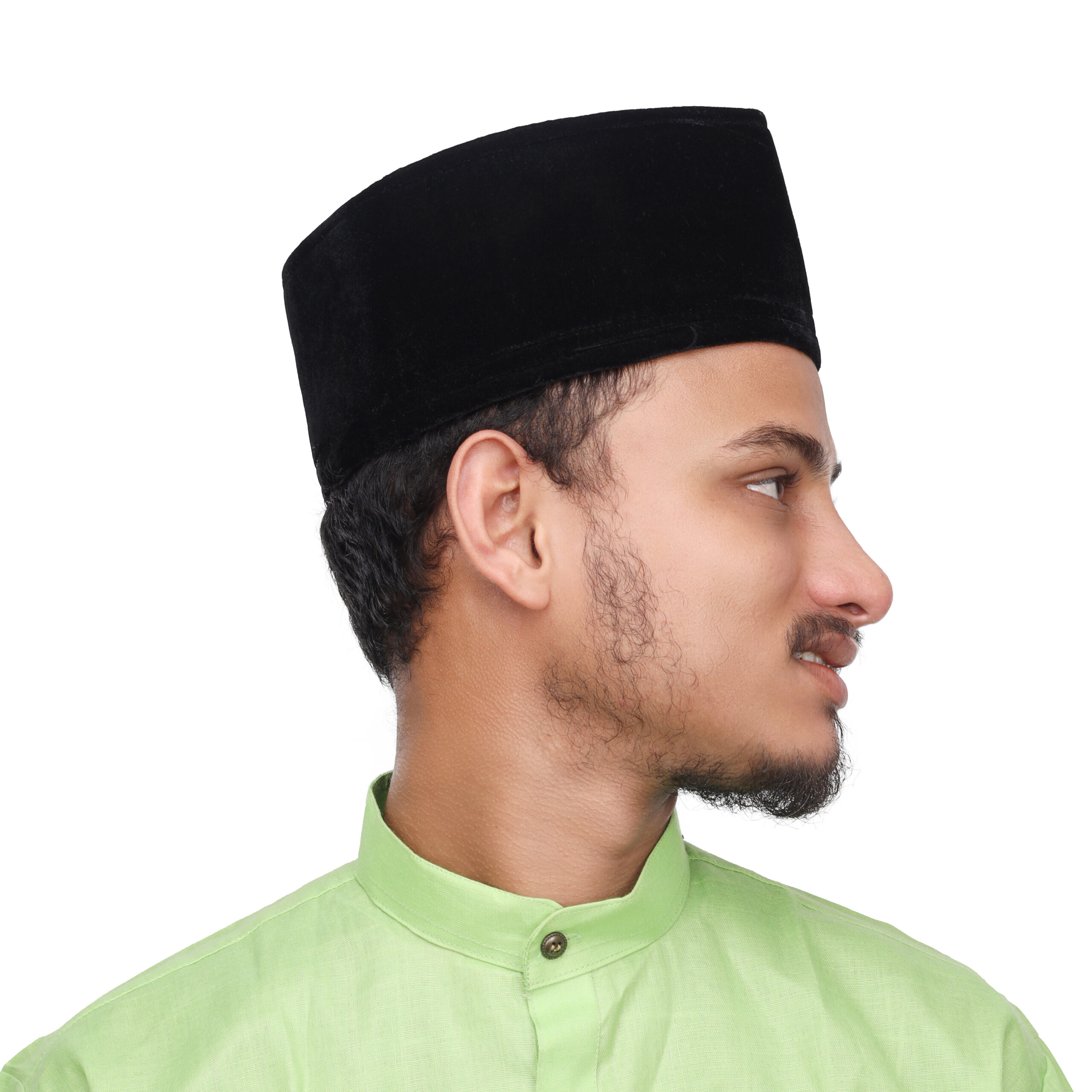 AA – 106 – BLACK TOP BLACK STN , iSLamic Cap For Men, Luxury Turkish Design , Handmade With SkiLLed Artisans, Pure VeLvet UniQue Muslim’s Fashion Prayer Cap