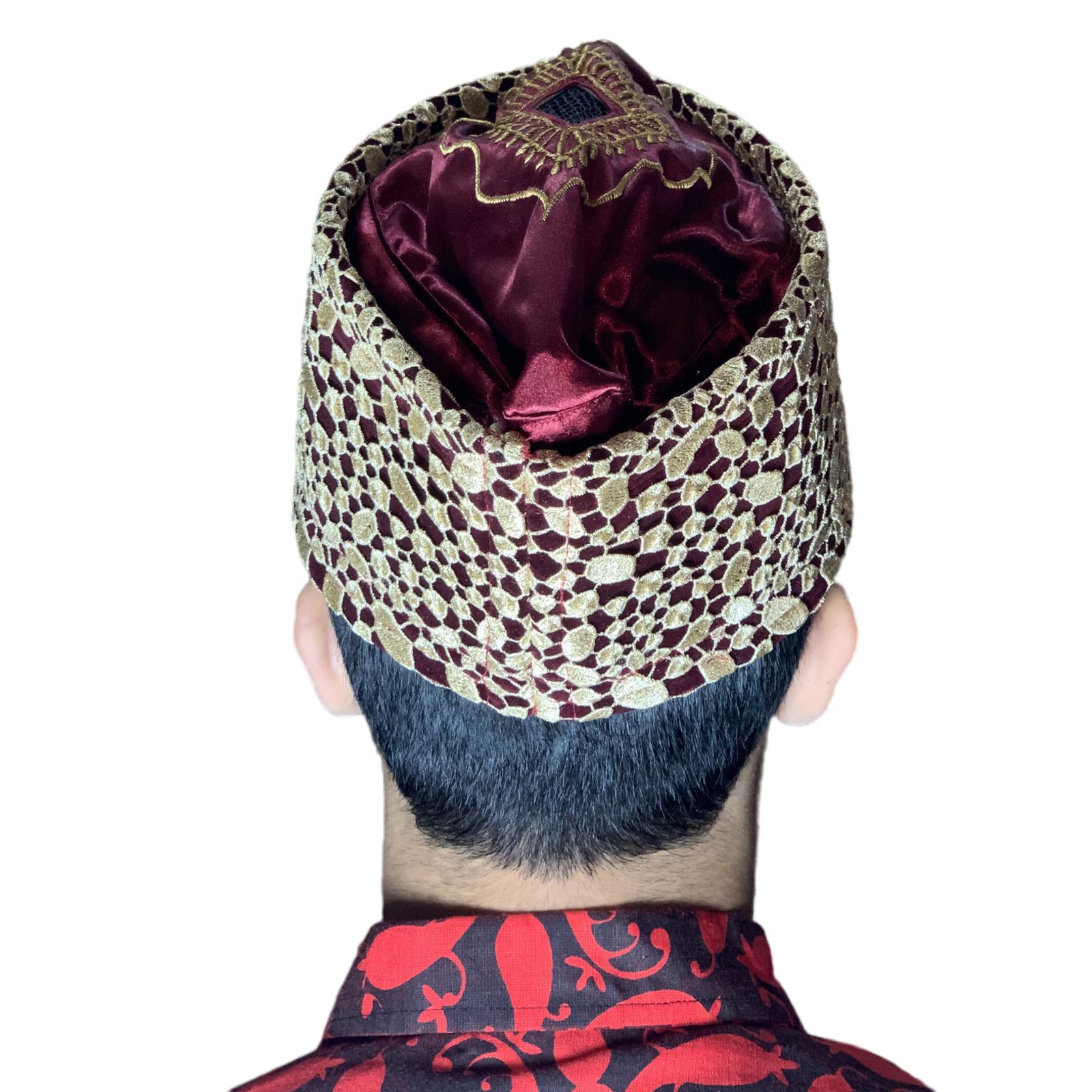 AA – 101 – MAROON TOP BLACK STN, iSLamic Cap For Men, Luxury Turkish Design , Handmade With SkiLLed Artisans, Pure VeLvet UniQue Muslim’s Fashion Prayer Cap.