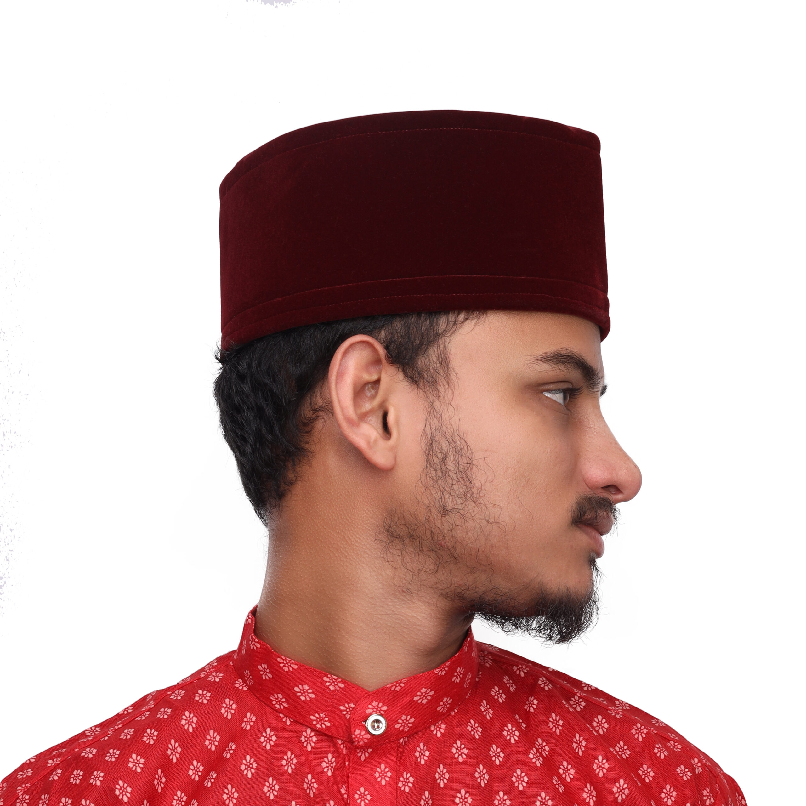 AA – 101 – MAROON TOP BLACK STN, iSLamic Cap For Men, Luxury Turkish Design , Handmade With SkiLLed Artisans, Pure VeLvet UniQue Muslim’s Fashion Prayer Cap.